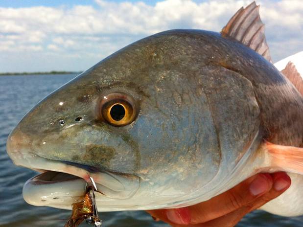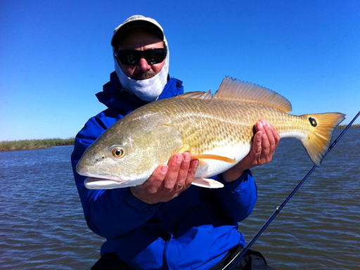 Jake tricked this redfish that was backing down a shallow shoreline.
